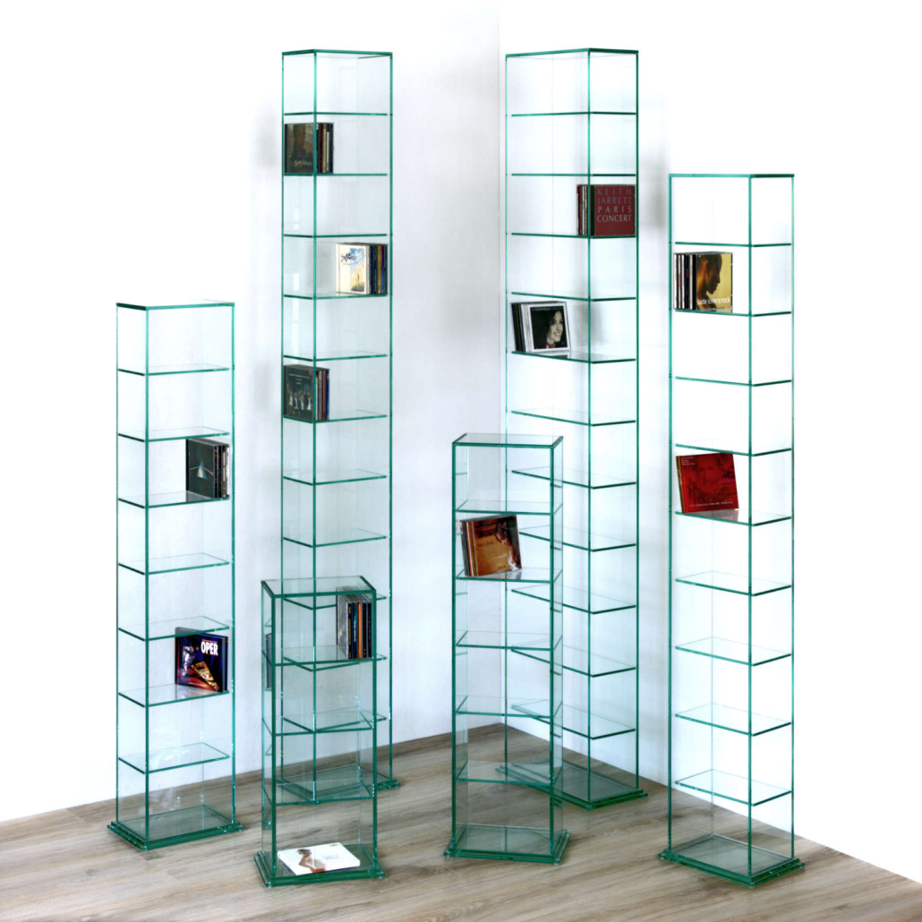 Wie alle unsere Glasmöbel fertigen wir auch die Glasregale Turrito für CDs, DVDs und Blu-ray Discs nach Ihren individuellen Wünschen an.