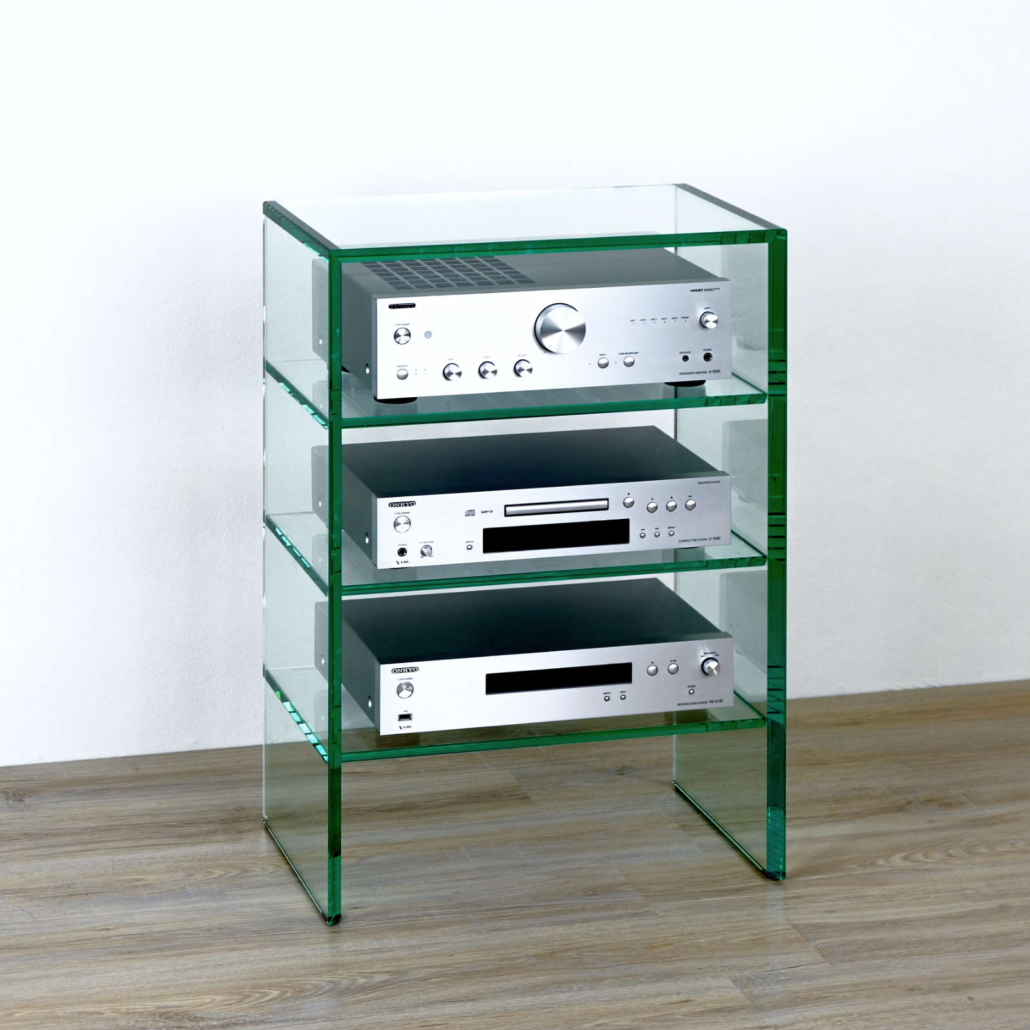 Wie alle unsere Glasmöbel fertigen wir auch das Glas-Hifi-Regal The Art nach Ihren individuellen Wünschen an.