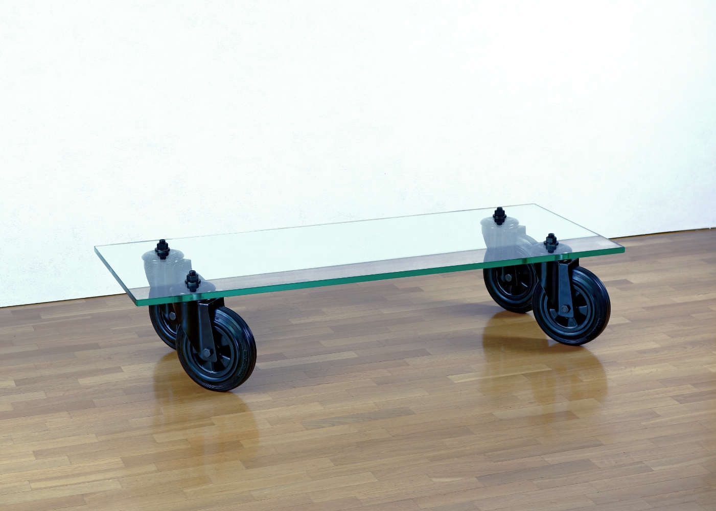 Für einen unserer Kunden aus Berlin haben wir zum Beispiel diesen Tisch mit großen Rädern gebaut. Die im Original unbehandelten Gehäuse der Räder wurden nach Wunsch des Kunden schwarz pulverbeschichtet.
